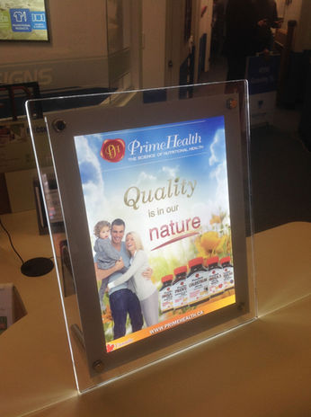 All of our frames are used in various ways in retail locations across Canada and the US. From large fabric displays covering whole walls to our small 8.5" x 11" countertop units at service locations highlight services and offers.